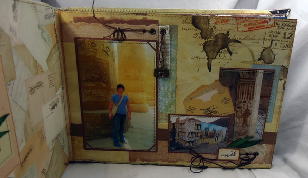 - альбом А-4 формата,с коробкой, 6 листов, 7 разворотов (фотки закончились, а так бы и не остановить меня...) , ткань плотная-вроде льна, акриловыми красками брызгала некоторый фон страниц и по периметру обмазала,для придания "потрепанности" . в общем,понравилась мне "мужская" ," поездочная "тема, отдохнула от розовых альбомов для девочек))-скоро еще один мужской альбом покажу... итак...пАшлите путешествовать по жарким странам вместе со мной, с небольшими комментами...
