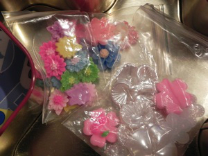 Цветочек,прозрачные дуги-это крепления для резинки к цветочкам.А белое-это ис.снег!!!!!!!!!!!!!!!!!В предверии праздников,думала,что тебе пригодится!Собирала тебе посылку не один месяц,вот и накопилось!!!!!!!!Теперь давай за работу!!!!!!!!!!!!