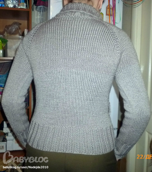А это попыталась в целом виде и детали сфоткать. Вязала регланом от горловины без швов. Воротник не стала делать выше, мне стойка совсем не идёт-шея короткая.