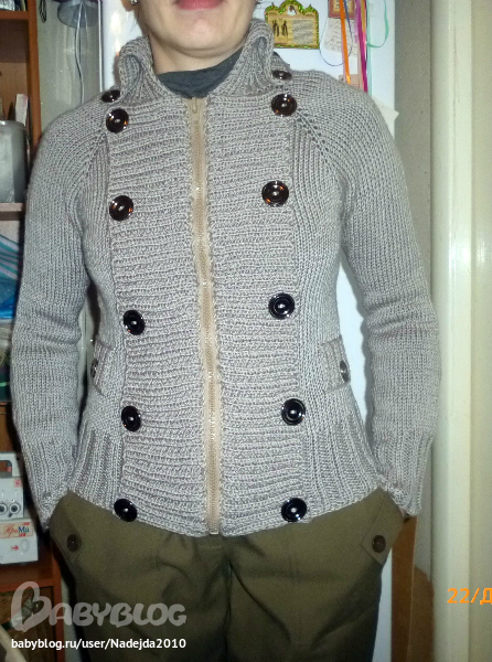 Вы молодец! Очень аккуратно! Но вот мне сочетание пуговиц и молний ну совсем не нравится - надо всё таки ближе к оригиналу - я бы взяла молнию металлическую (с таким оттенком под бронзу) и такие же бронзовые пуговицы. Ведь в кофточке эта фурнитура решающую роль играет! А сейчас не совсем органично.