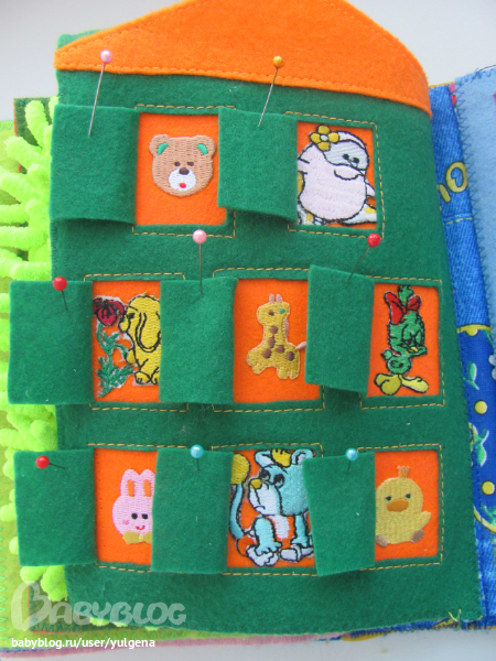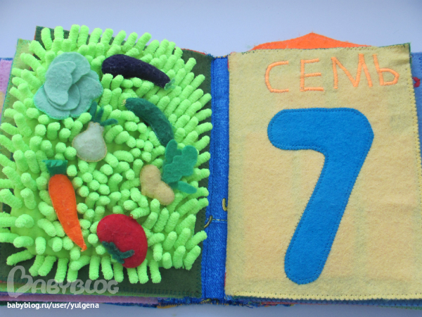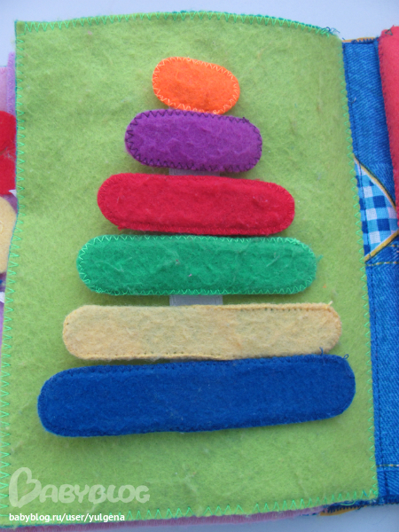 Шесть - пирамидка на липучках. Эта страничка наш хит №1, любим все оторвать и разбросать:)