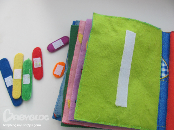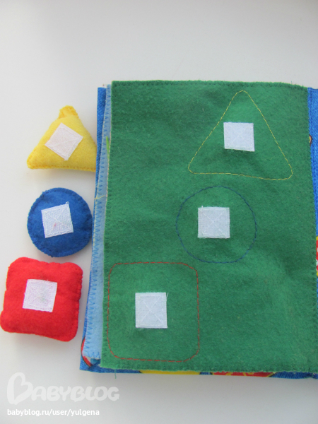 Фигуры на липучках, место каждой обозначено соответствующим цветом