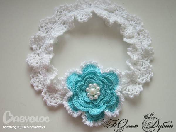 пряжа Пехорка Ажурная....цвет льдинка-красиииивыййй....крючок№2....ну и повязочка от Розетки...много я их уже связала...удобно что на резиночке)
