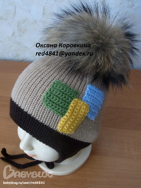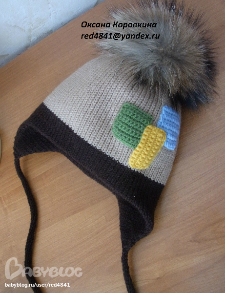 добрый)))а схему как таковой и нет))всё на глаз..под размер)))связала 17 см прямо...потом ушки част.вязан.потом прямо 19см и за один ряд стянула)))лоскутки под комбез)))