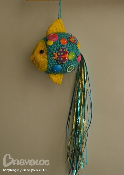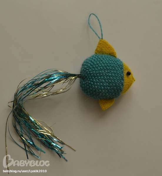 Спасибо, Наталья. По этой рыбке есть замечательный мастер-класс, очень подробный. Вот ССылка на него. Я в посте не написала, что внутри у рыбки яйцо с бусинками от Киндера, так что она еще приятно позвякивает. Думаю, свяжите без проблем. Удачи!