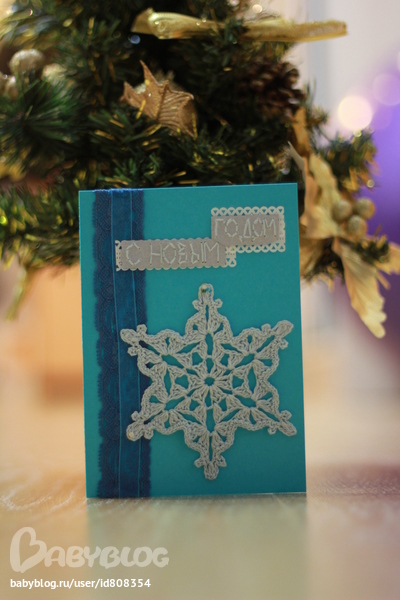 Открытки полетели к бабушкам в Оренбург и Бузулук. К сожалению нет возможности многое закупать для творчества тк сижу в декрете, в ход пошли давно купленые ленточки, бумага, снежинка вязалась из давно завалявшейся нитки Ириса и тд. Картон правда купила специально.