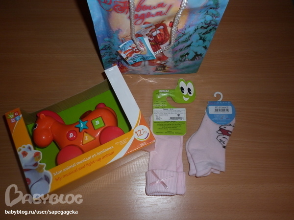 замечательная музыкальная игрушка и носочки!!!!! она уже играет, так смешно пытается нажимать на кнопки )))))