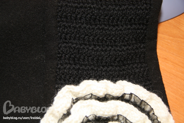 Цветок пришлось полностью распустить и переделать - рядочки пореже и в меньшем количестве. Кружево все же оставила, не смогла с ним расстаться, тем более, что это мне сноха и купила для рукоделия, но она просила брошку связать белую в виде вязанного цветка с такой отделкой черным кружевом.