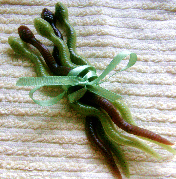 Сколько этих наборов змеек отлила-не перечесть!! это был СААМЫЙ популярный "лот"))) брали и в наборы, и в дополнения к подаркам, и россыпью. Аромат: еловая хвоя+мокко.