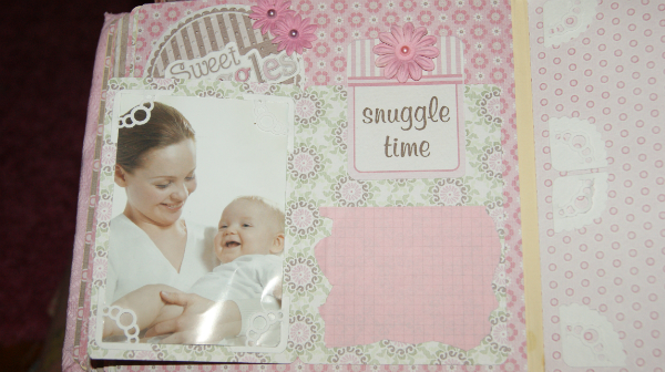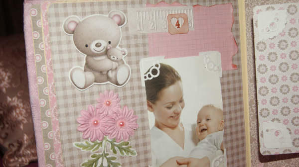 Первый разворот - первые фото и фото выписки, журналинг для записей о выписке.