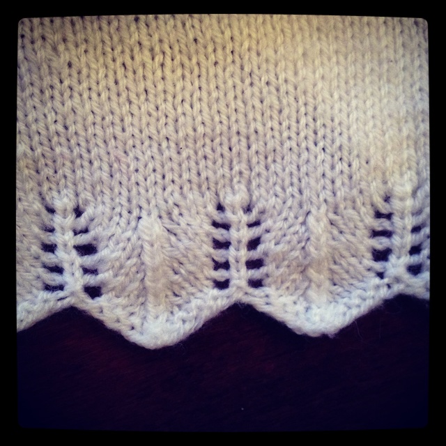 Там где дырочки это накид, лицевая, накид. Где как ёлочка, там 3 петли вместе. Можно вязать пошире, можно поуже. Если как на фото, то вяжете так: 3 лицевые, накид, лицевая, накд, 3 лицевые, 3 вместе(вторую и первую петлю поменять местами) так до конца ряда. Не знаю, понятно или нет?