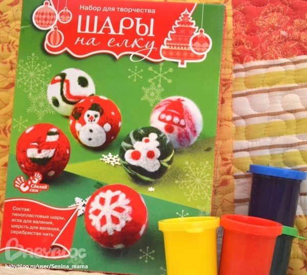 Для творческих занятий с детьми еще набор по валянию шерстяных шариков на елку. Очень крутой, будут у нас эксклюзивные шарики:))) И еще пальчиковые краски! Будем вазюкать попозже со Стешулей:)))