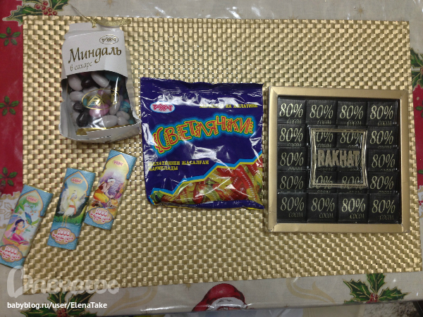 Сладости к Новому году. Лукас миндаль не оченил, а вот я даже очень, вспомнила детство )))), вкусный такой. Зато Лукас очеил светлячков )))), а остальное пока убрала, блин, и так за праздники 2 кг набрала, я просто в шоке, мне же оголяться уже после завтра. Так что конфетки оценю потом.