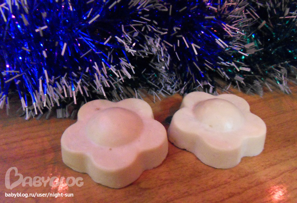 Это из детского мыла.плохо растопилось и не ровные края вышли.добавляла отвар ромашки, не знаю, правильно ли сделала.