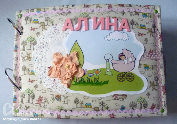 Вмещается в альбом более 70 фотографий. Точным подсчетом еще не занималась, боюсь тревожить альбом :-) Много раскладушек, конвертов для памятных вещей. Формат А4. Обложка мягкая. Ну вроде бы и все. Еще раз прошу прощения за качество фотографий. Буду работать над этим.