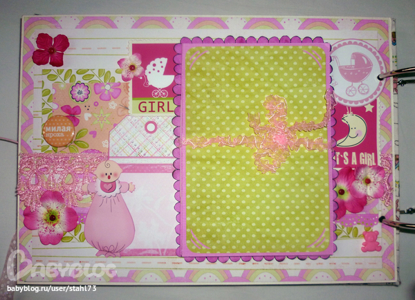 Вы знаете, я рада, что вам понравилось то, что странички разные. Вот не могу делать, как говорят, в одном стиле детские альбомы. Мне кажется, что это как-то скучно. Но это мое мнение. Я на нем не настаиваю, и ни в коем случае никому не навязываю. Просто очень рада, что вы меня в этом вопросе поддержали :-)
