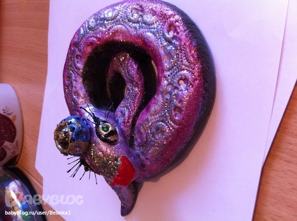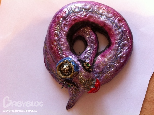 4. Из остатков - маленького комочка теста - Змий (аспид) на ялобке : пришлось перкрашивать раскраску дочки, так что не судите строго - что вышло, то вышло...