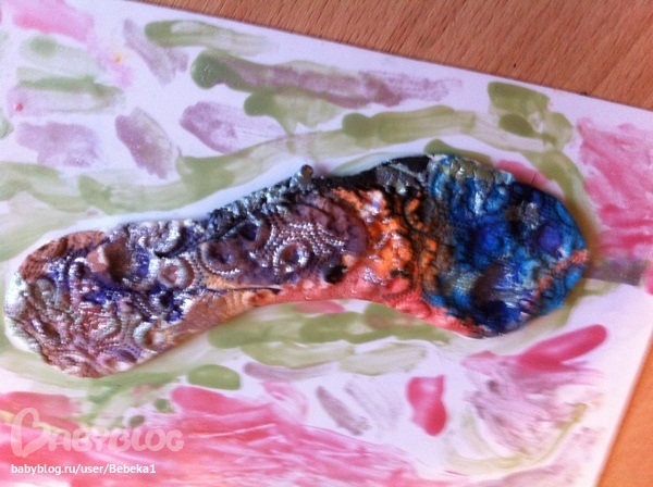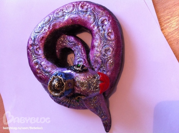 2. Зменыш мамы змеихи, отдыхающий на цветочной полянке. Это полностью дочкина работа, сама лепила, красила, фотографировала ))