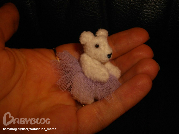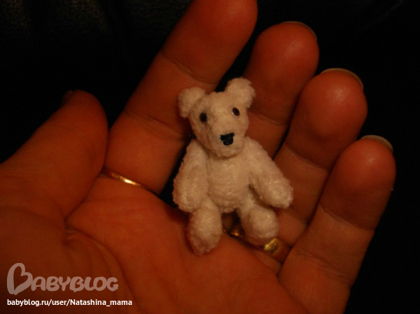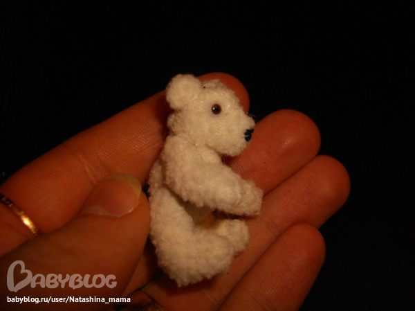 Одна девочка (не помню, к сожалению, ее ник) выставила тут на днях сшитого по какому-то курсу 5,4 см мишку)))) ТАК он меня потряс, ну просто сказать невозможно! Я, к сожалению, на курсы никакие не ходила, но решила попробовать, и сделались два мишки, один коричневый, один белый. Ростик малышей 4,2 см))))