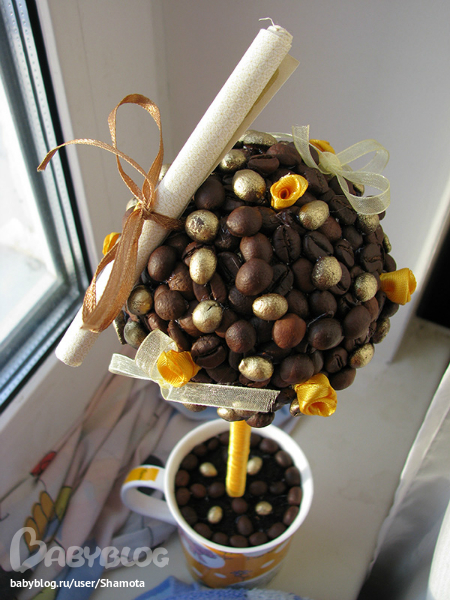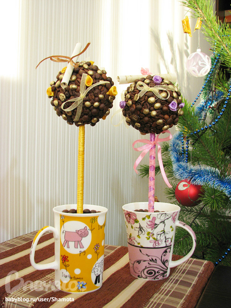 Девочки, решили мы с мужем в этот раз на НГ подарить родителям не просто билеты в театр, но и красиво их преподнести. Давно хотела сделать кофейные деревья, но все чего-то не хватало, а с покупкой клеевого пистолета поняла - ПОРА :-)