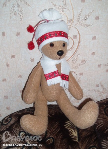 Она на них любуется,пальчиком прикоснется и -АХ!!!!!!!Но не берет!Очень ей мишутки на коньках нравятся,потому и решила мишутку сшить.