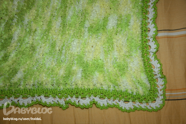 это пледик в коляску, ниточки брала тут у девочки с распродажи. спасибо большое!!! очень мягенькие и вязать быстро! немного смахивает на махровое полотенце, но гораздо нежнее)))) как раз ножки укрывать весной и в начале лета. и коляска у меня зеленая:))))