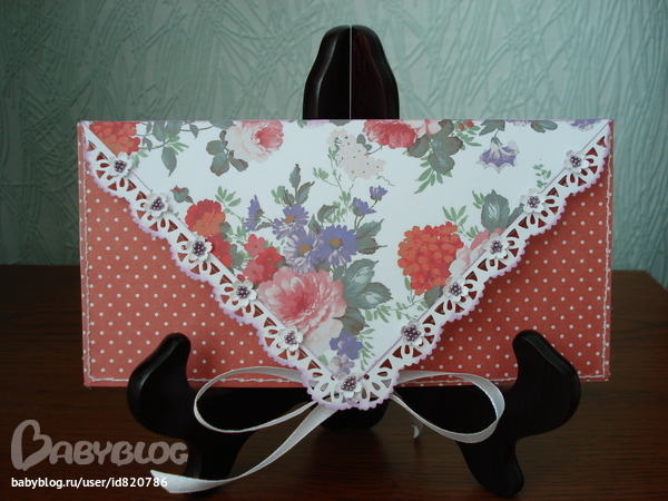 Здравствуйте, дорогие ББ-шечки! Вот и решилась я (не прошло и двух лет:) зарегистрироваться на этом замечательном сайте. Всё не решалась, смотрела ваши работы, но теперь видимо созрела. Скрапушка я непрофессиональная, делаю работы в основном для друзей, коллег и близких, так что на лавры не претендую. Просто хочется показать и свои работки и ваши похвалить или посоветовать, если что, еще менее опытным, чем я. Так что надеюсь, вы будете снисходительны к новичку. Вот, собственно и конверты: