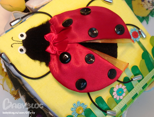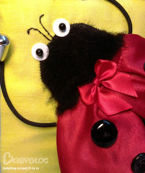 Весна. У божьей коровки две пары крыльев,нижние шуршат. На верхних разные по фактуре и диаметру пуговки. Лапки резинки. Голова из натурального меха. Трава из атласных лент, можно отгибать.