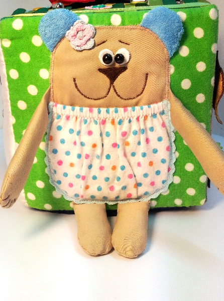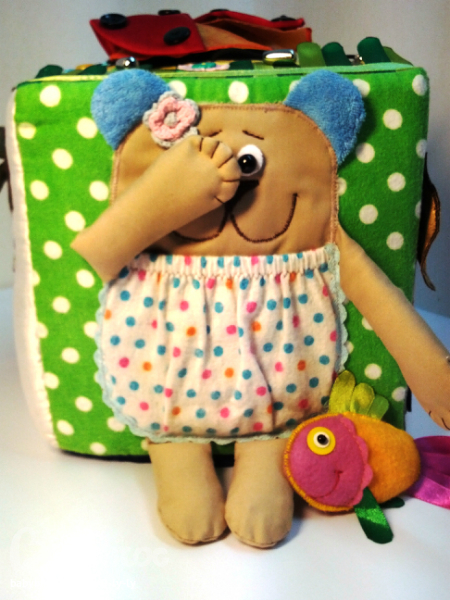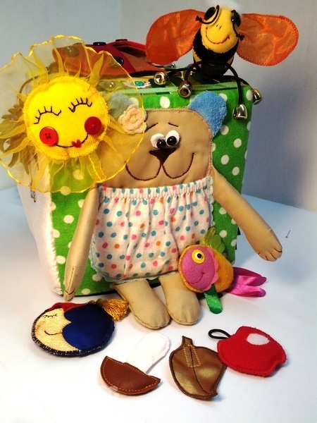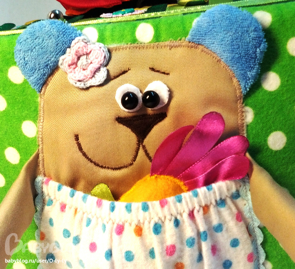 Мишка-карман. Мягкие лапки, в нижних зашиты бусины ,можно щупать,перекатывать(для моторики) Ушки мягкие шуршат. глазки пуговки.