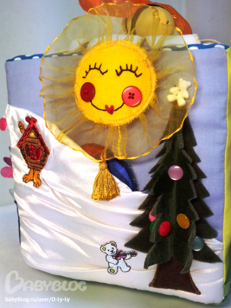 Зима. День и ночь. Солнце и луна шуршат,крепятся на небо на липучке, прячутся за снежный холм-карман(наполнен синтепоном)