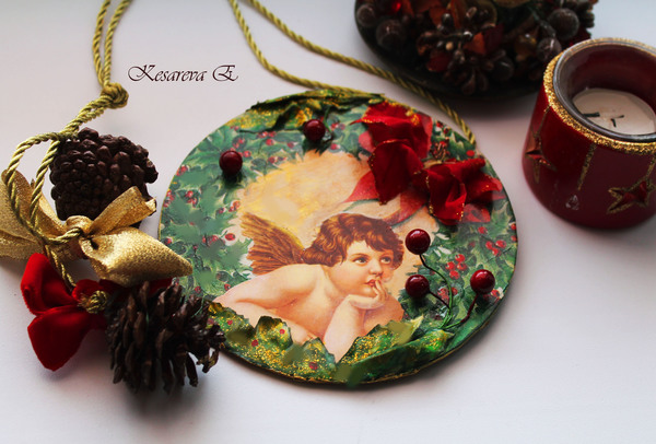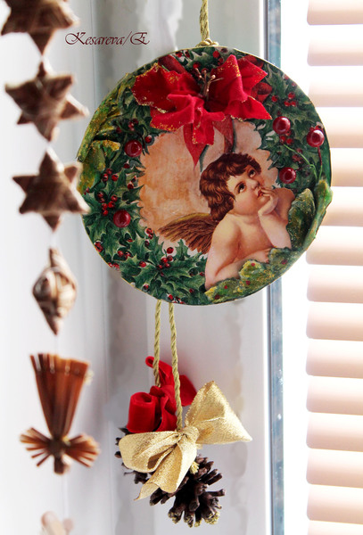 Спасибо! бантики это просто бантики, в смысле ленточки. А вот шишки, золтой шнур и красный  "цвяток" это украшение просто украшение от коробки конфет.