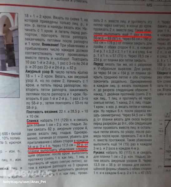 там же написано УБАВИТЬ в каждом 34 для талии!!! и еще в 50 ряду тоже убавить. это платье что ли? а 14 вы имеете в виду по рапортам когда надо убавлять? а у вас столько же рапортов получилось сколько и в журнале или у вас ниточки потолше, и количество рапортов поменьше?