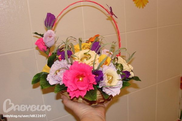 Один минус - даже по ночам впоминала о конфетках, цветочках и корзиночках, жалко с собой не взяла ))) Но вот мы вернулись и ручки уже чешутся. Скоро у свекрови Др, в голове много идей, завтра начну. А пока очень хочется знать ваше мнение о моих первых работах и получить ваши советы, что можно сделать лучше. Заранее огромное спасибо!