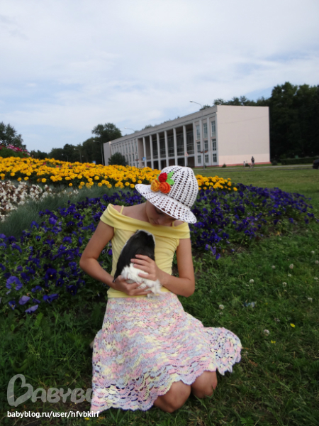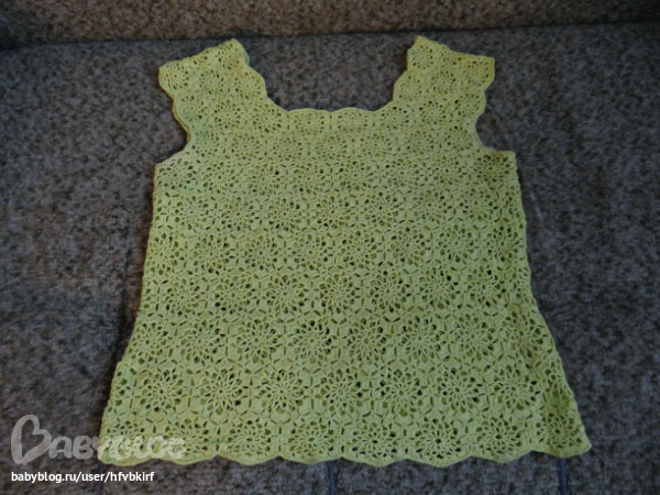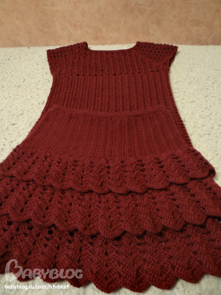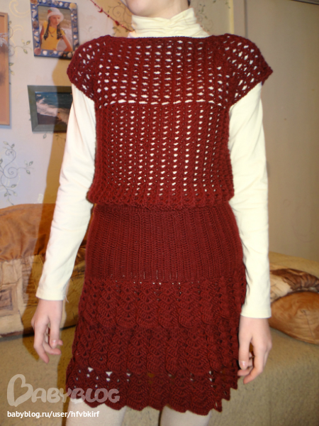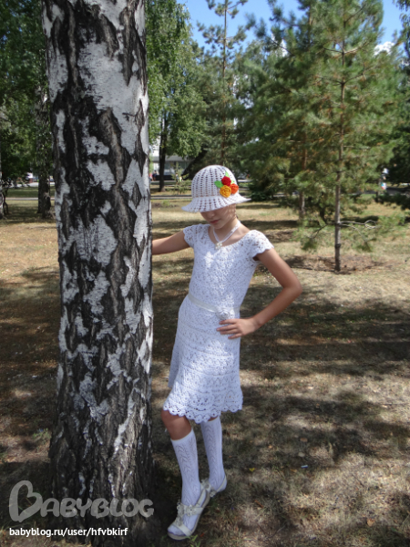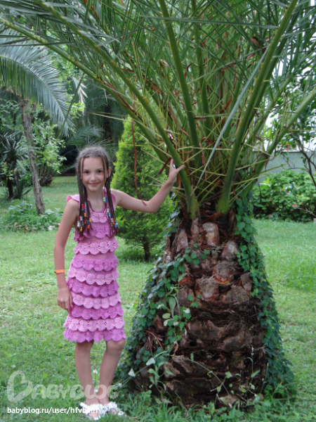 Это платье со знаменитыми тюльпанами (вяжется сверху вниз единым полотном) вязала дочке на выпускной начальной школы.