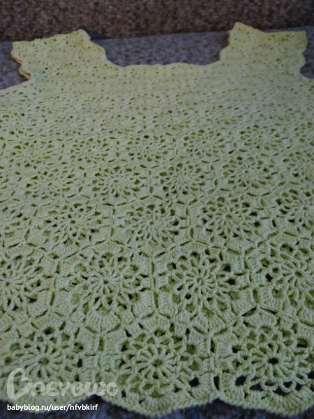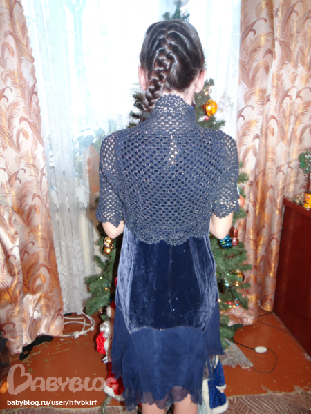 Это платье я вязала из вискозы Семеновской. И не учла, что при носке вискоза вытягивается... Поэтому основа-филейная сетка, теперь видна, меня это немного смущает.