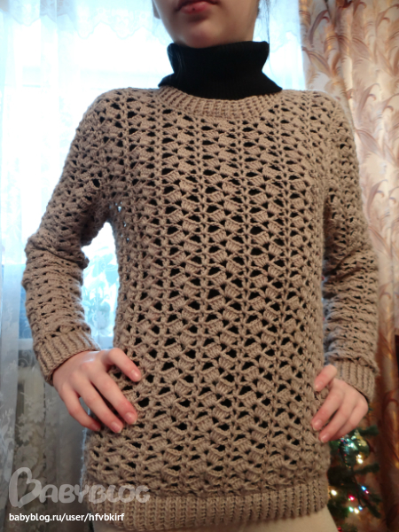 Свитерок моим любимым узором))) Очень приятные ниточки - Лидия Квадро Голд (Семеновской фабрики) - всем рекомендую. Цена моточка - демократичная и ниточки не хочется из рук выпускать (шерсть-акрил 50:50).