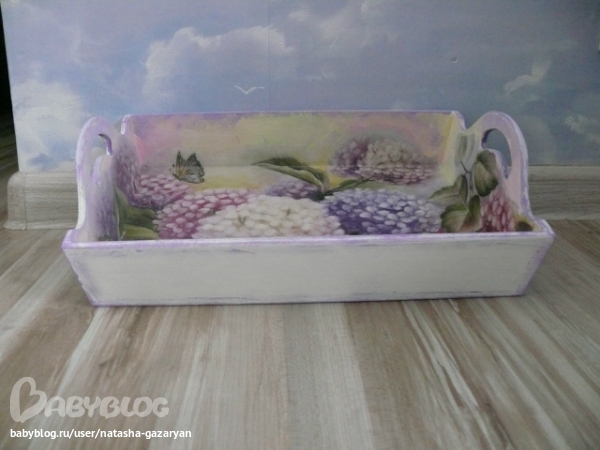 Я только начинаю. насмотрелась и начиталась всего и вот пробую ) Первые два подноса запорола! ))) этот уже хоть на что-то похож! я вот думаю - не сделать ли двухшаговым кракелюром крупные трещины? боюсь испортить, потому что с первыми двумя так и произошло - до кракле все было прилично )))