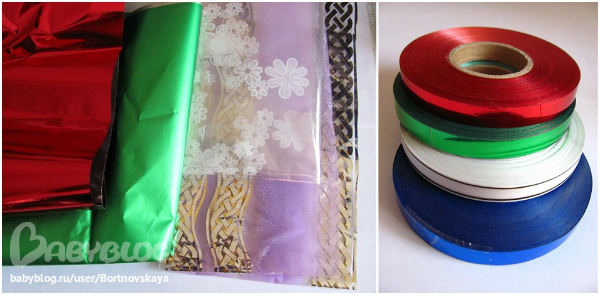 5. Упаковочная бумага для цветов, лучше если будет несколько видов бумаги — цветная и прозрачная.