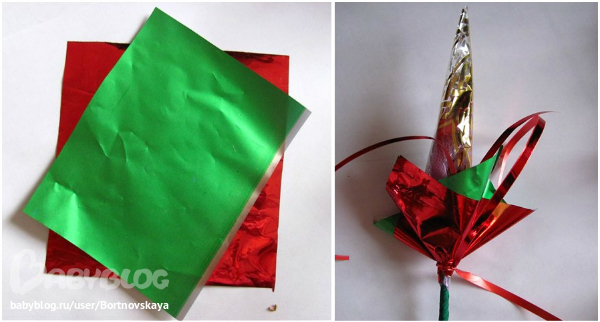Из прозрачной пленки делаем конусы, закрепляем скотчем, чтобы не разворачивались.