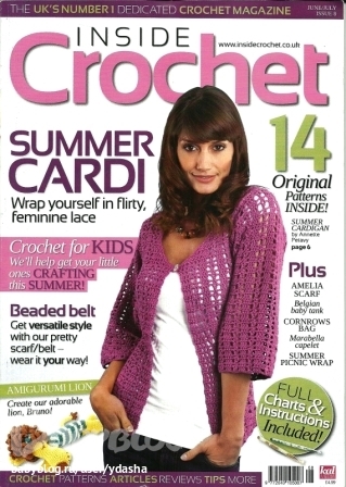 Книги и журналы по рукоделиюЖурнал по вязанию крючком на английском языке, с описанием и понятными схемами. В этом выпуске 14 оригинальных моделей; "одежда" для чайничка, кардиган, симпатичные жакеты и болеро, топ для девочки, пояса, шарфики, палантин и очаровательный лев.