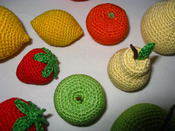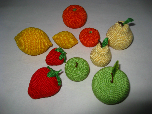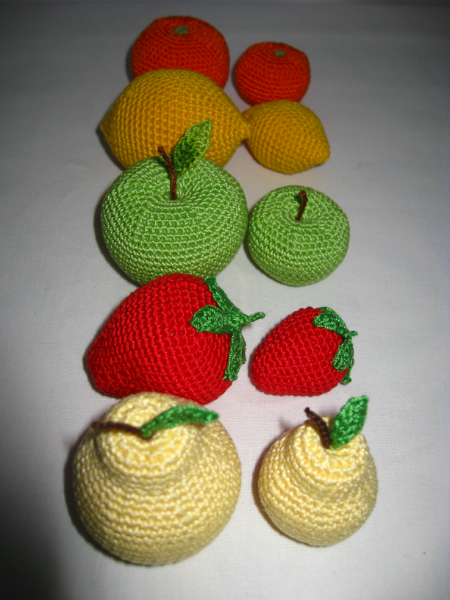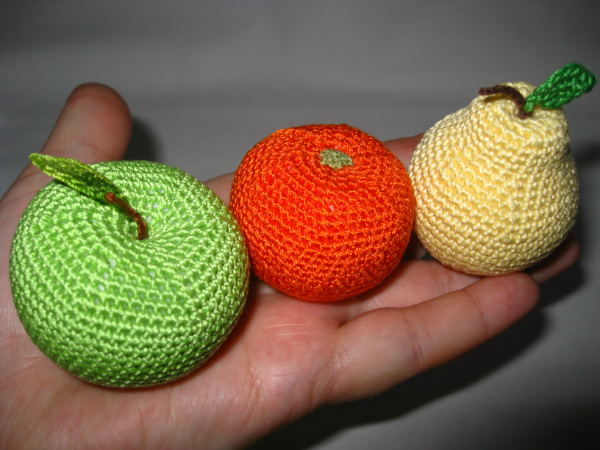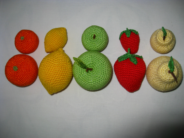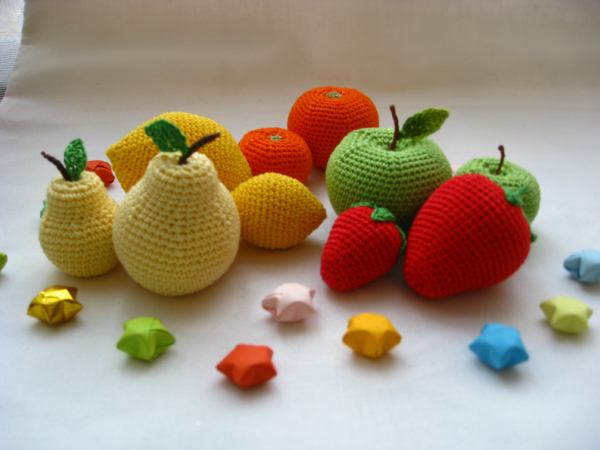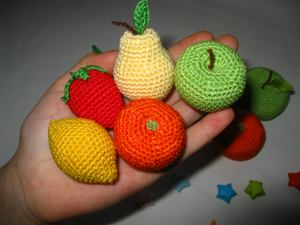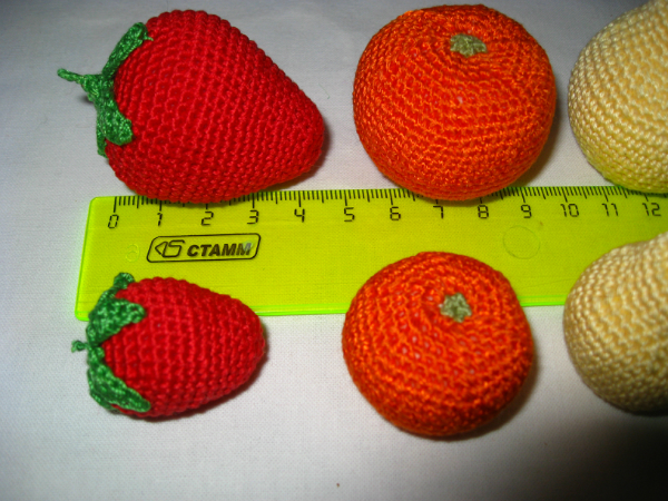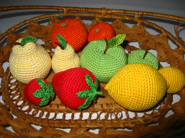 Светочка, фрукты отличные, смотрю, ты решила разнообразить и связала парами фруктики, я заболела ими, довяжу развивающий горошек и попробую фруктово-овощную карзину дочи связать. Постою послушаю по поводу ниточек.