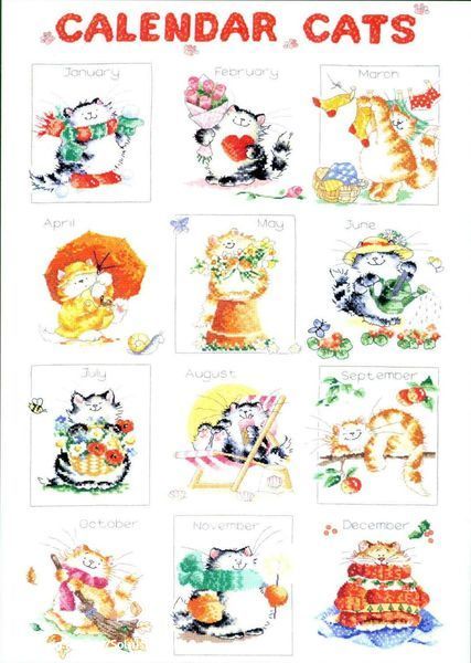 В "вышивке-онлайн" мы с девчонками вышивали календари с этими котами. Я осилила только одного, на тот момент это было для меня сложно. Посмотри там на первых страницах.