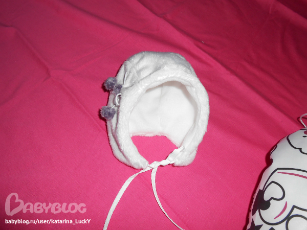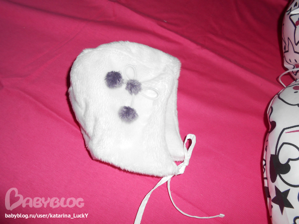 Шапочка для новорожденной: Ottobre 2012-06 мод.10. Брала размер 38, думаю, будет в самый раз. Крой шапочки очень анатомический, вытянутый эллипс (как раз как головка новорожденного). Материалы: верх - белоснежный вельбоа, подклад - поларфлис. Утеплитель не делала, т.к. на коконе теплый капюшон - дабы не кутать излишне малышку. Отделка - минимальная, бантик из шляпной резинки с помпонами из контрастного меха вельбоа цвета орхидея: