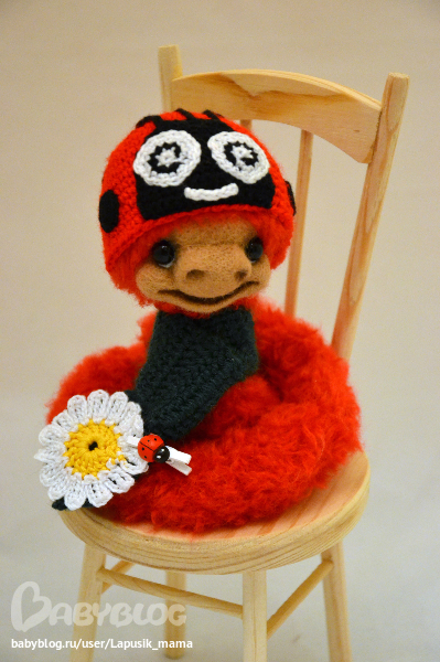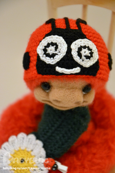 было очень приятно и легко общаться)) Маруся у нас одета в шапочку Божья коровка и шарфик. Очень милое получилось создание.