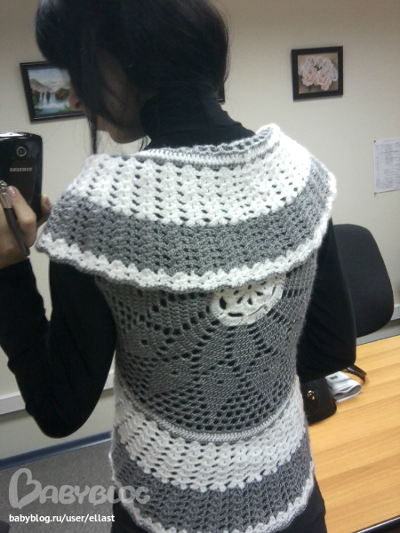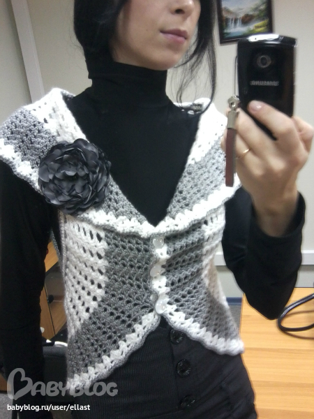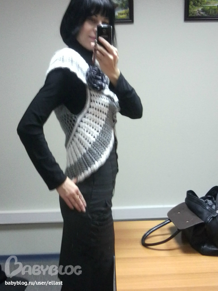 Связала еще месца 2 назад себе жилеточку специально на работе ходить. Она очень простенькая, но мне безумно нравится, может, конечно, по тому, что сама сделала, но све же))))