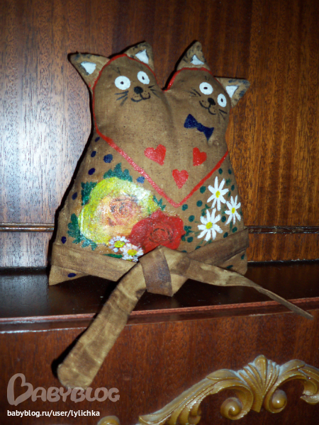 Все очень симпатичное, но коты особенно. Мне понравились! Это на ткани декупаж? Как их сделали?
