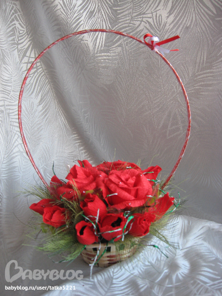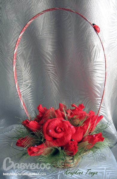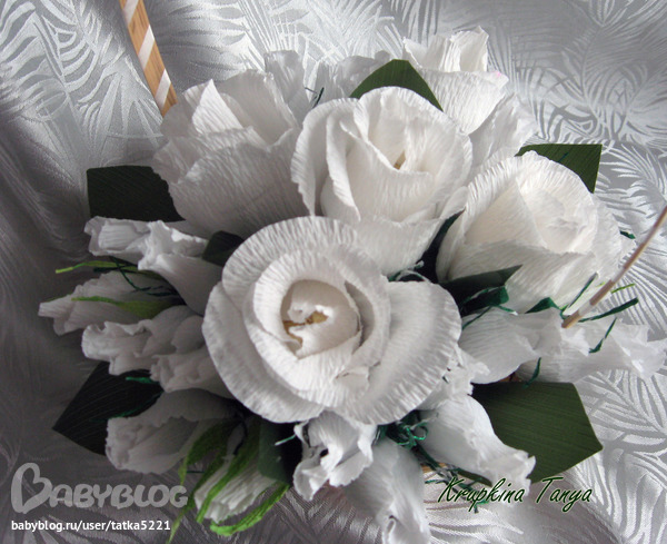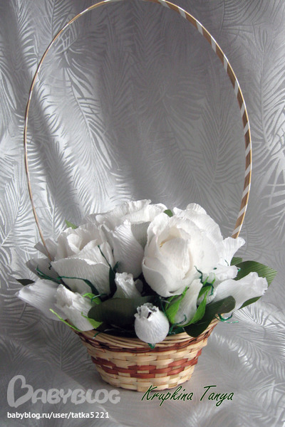 спасибо. Листики в белой корзинке из аспидистра вырезаны) у бутонов зелень из гофры
