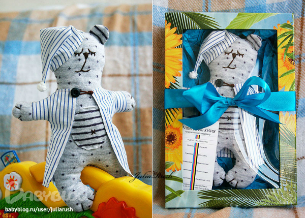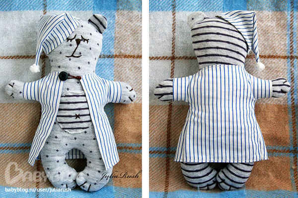 я влюбилась!! хотела сынуле сшить сонного ангела мальчика, но увидела этого мишку - и все! решено, будет такой мишка! только подскажите плиз выкройку?? и из чего шили? какой же он классный и прям мальчуковый!!!! сууупер!!!