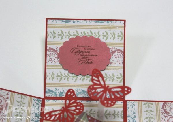 И вот она раскладывается - в середине конечно же 2 любящих сердца (как же без них в такой день!!!) ииииии .... парящие бабочки ))))) На 3х сторонах будут небольшие фото на вспененом скотче (опять же всё паряще и воздушно))))