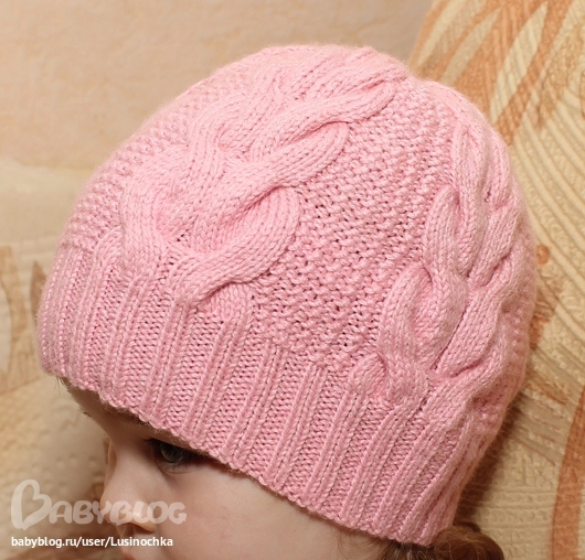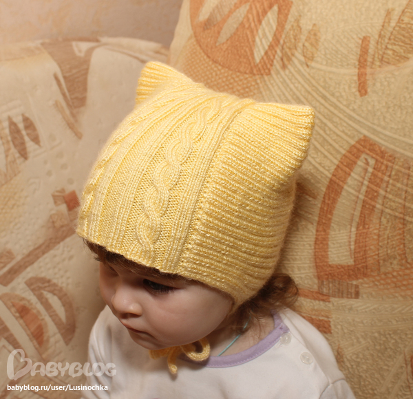 Розовая по этому описанию http://ssvetulya.livejournal.com/43025.html Котошапка http://ru-knitting.livejournal.com/3356797.html только другое кол-во петель, т.к. пряжа тоньше. В поисковике наберите "Котошапка", много ссылок будет, как вязать.